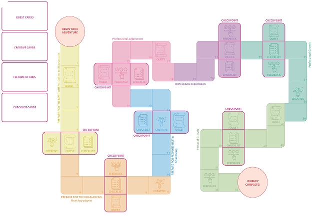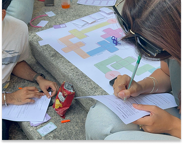 Low-fidelity prototypes included a physical board game experience used during co-design sessions to test gamification mechanics and engagement patterns. This revealed that while play increased engagement, onboarding required more structured developmental progression. This codesign session was conducted with 6 potential users. We used a low-fidelity MVP (in the form of a boardgame) to test the service structure.