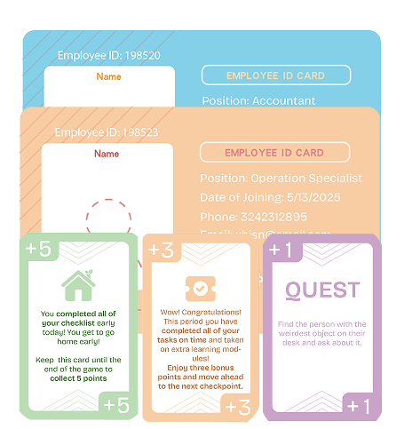 Initially, the concept centered on a highly gamified buddy-board-game format. Co-design testing revealed limitations: onboarding is not a one-time event but an evolving integration process.