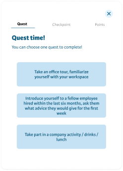 • Quests: Personalized, phase-based challenges supporting personal and professional growth.